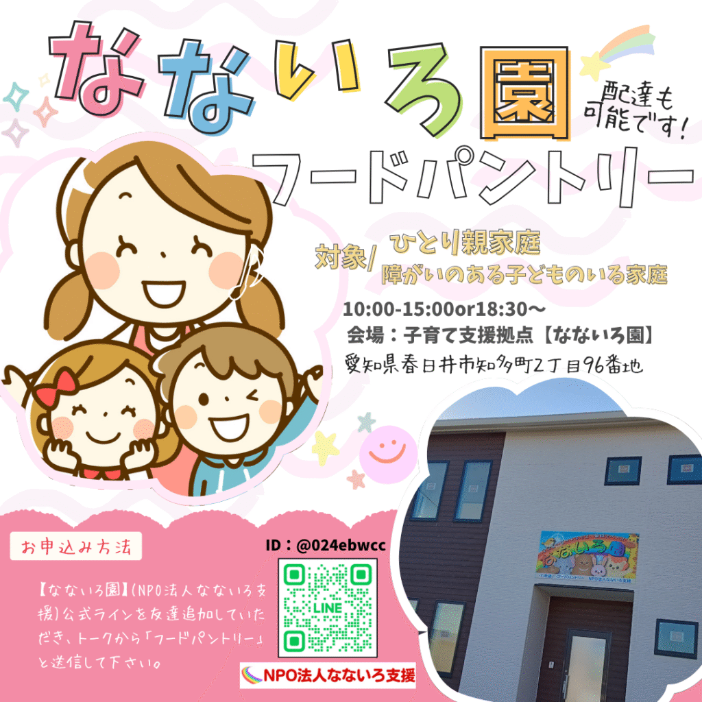 【なないろ園】フードパントリーは2026年1月まで、毎月1回〜2回実施致します🤗