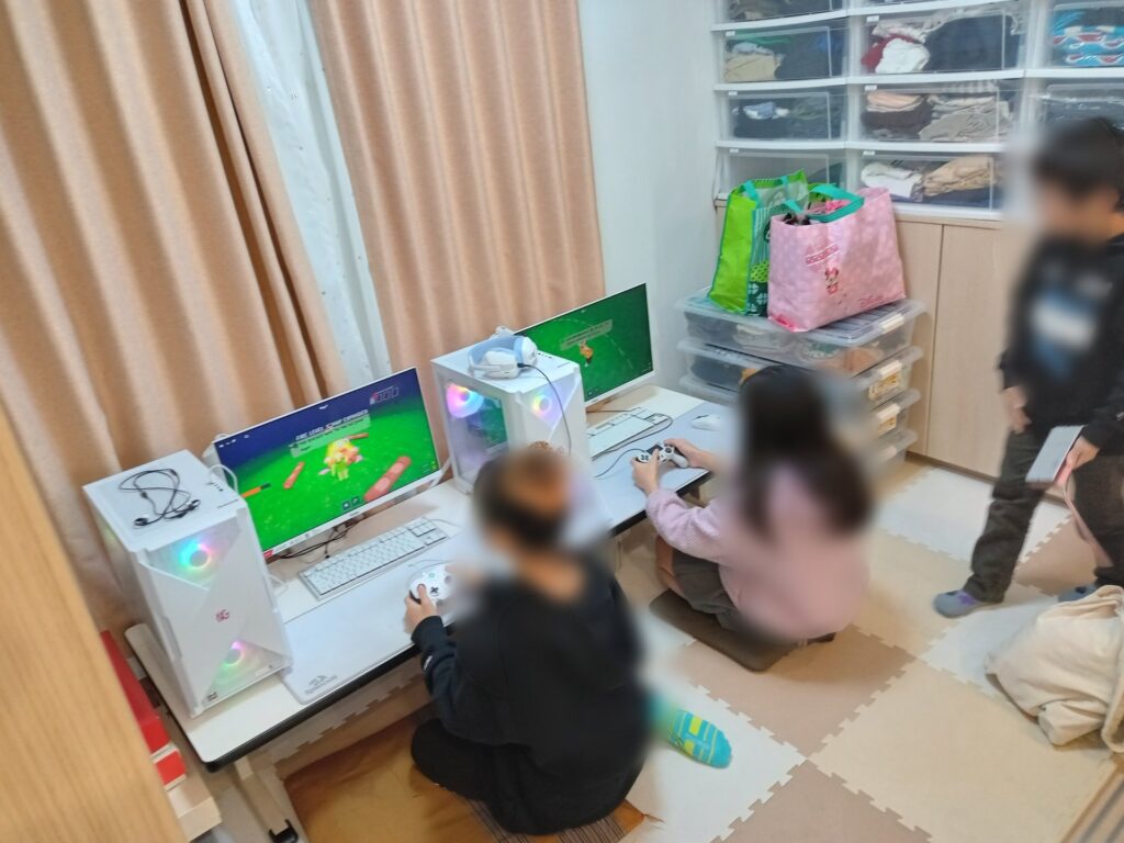 11時に子ども達を親御さんから【なないろ園】でお預かりして子ども達はさっそく大好きなゲームのフォートナイトやマリオカートやロブロックを🤩❗